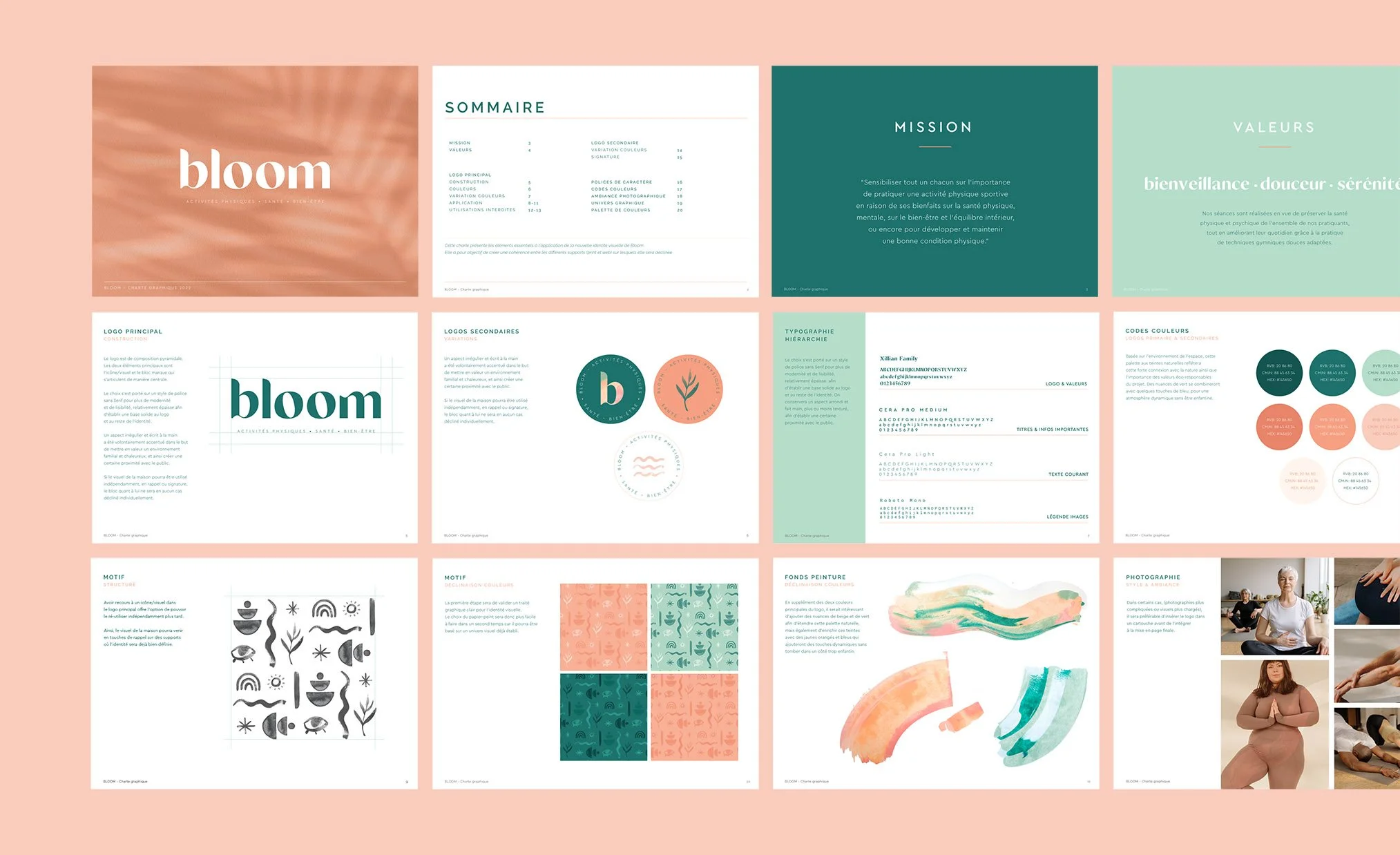 From the strong curvy logo to photography style or hand-painted waves, all the visual elements were designed to converge towards that idea of flow, positivity and serenity.